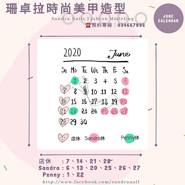 【珊卓拉時尚美甲造型】109/06行事曆